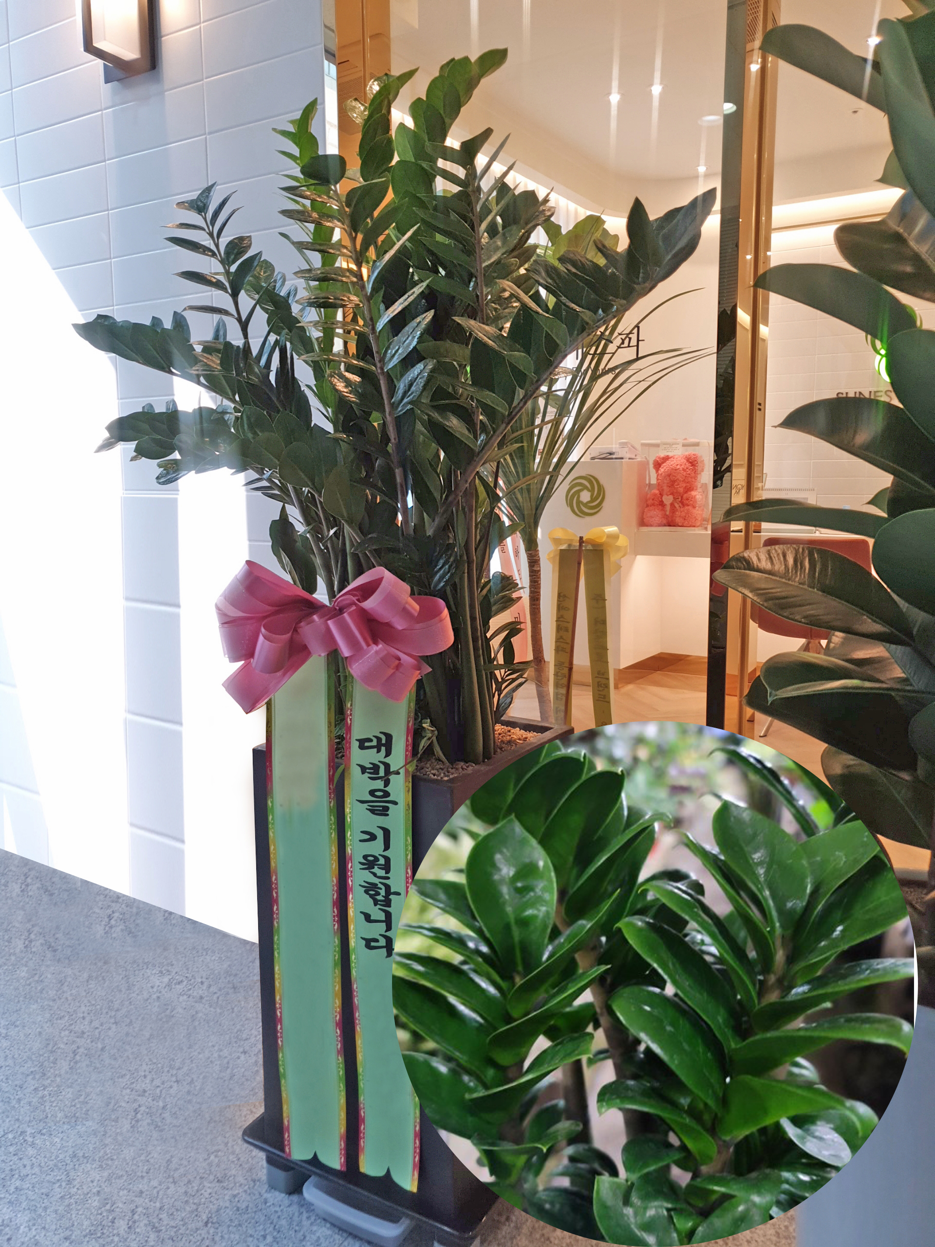 개업화분으로 가장 인기가 있는 관엽식물인 금전수는 잎의 모양이 동전 모양과 비슷하여 돈나무라고 불리기도 하는데요 돈을 불러오라는 의미로 많이 선물을 하는 식물입니다